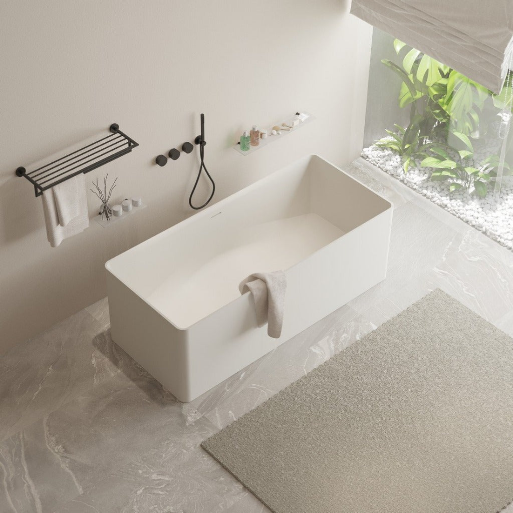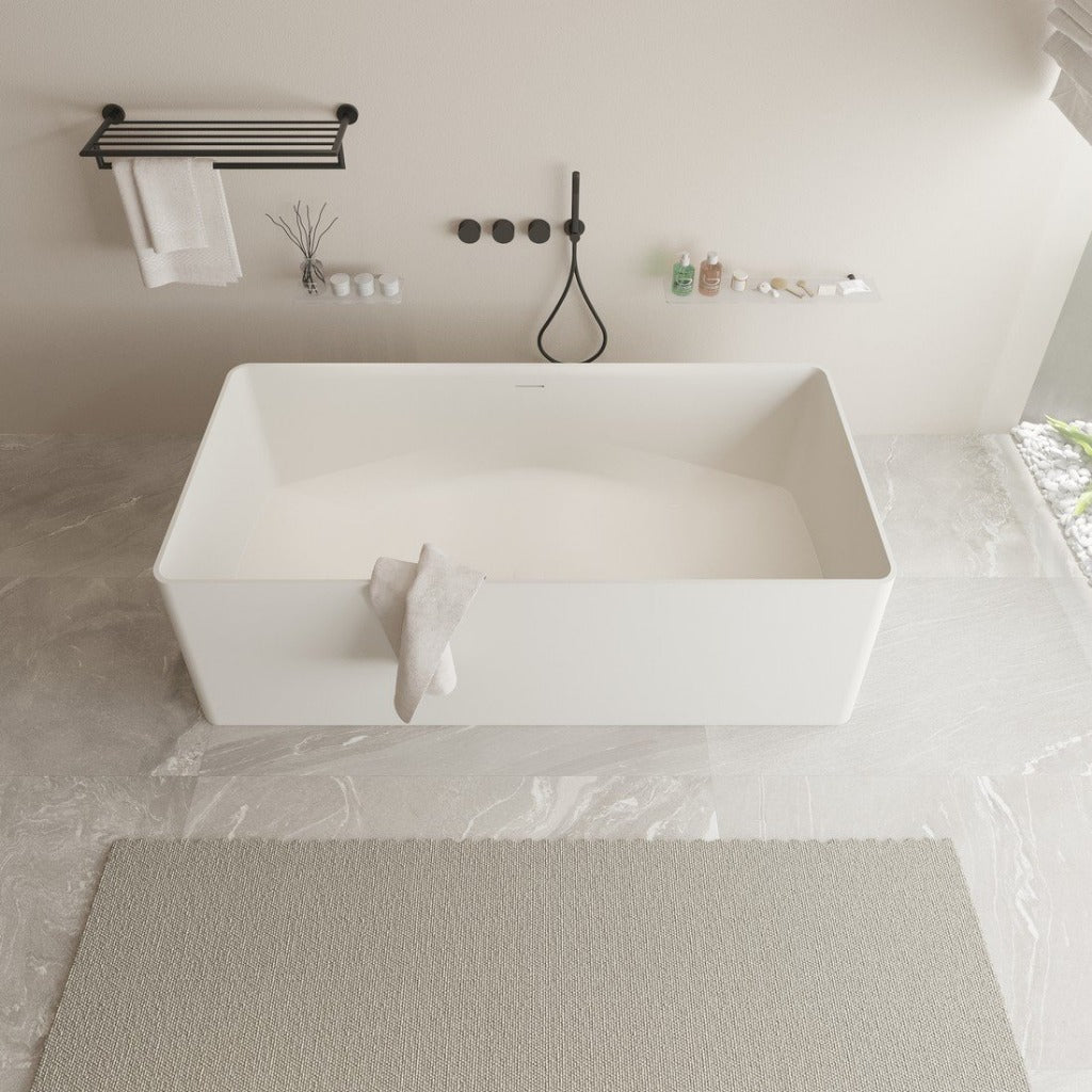 The Solidthin bathtub from the house of Ideavit features a solid white matte surface and a neatly placed overflow hole at the center of the tub. Also included is a waste pipe and a convenient pop-up drainage with a solid white matte cover. Solidthin with its classic rectangular shape, 1/2" thick edge and sleek lines it's very versatile and will fit well with your modern aesthetic space