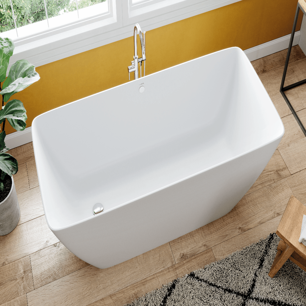 Designed for minimalism lovers, the Taos stand alone bathtub from the house of Acquabella takes this style to is maximum splendor, as it can integrate into the most modern of bathrooms while becoming the protagonist of the space. Showing off its modern cut, Taos makes a straight design feel warm and welcoming: the perfect combination for the most daring. Enjoy this freestanding bathtub with drain and external chromo overflow included. Taos comes standard in a snow white finish with multiple color options available.