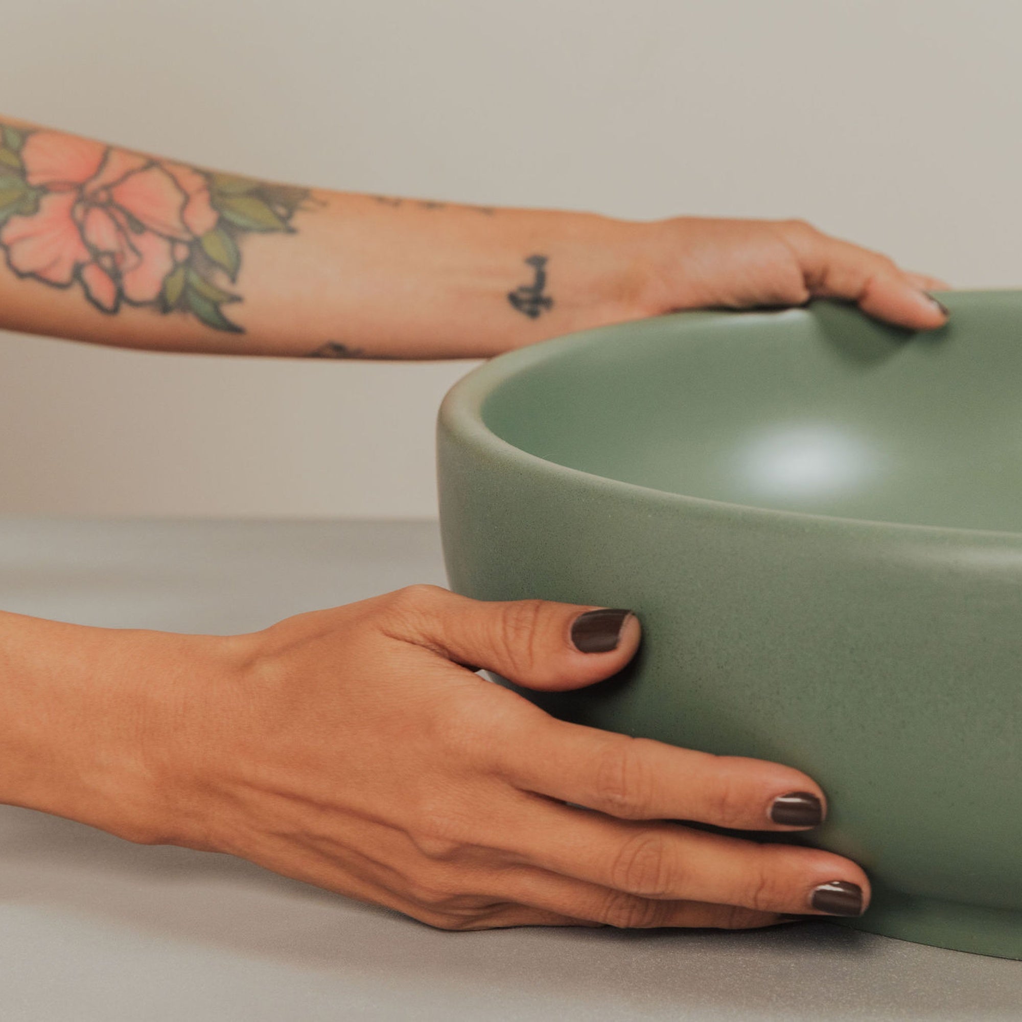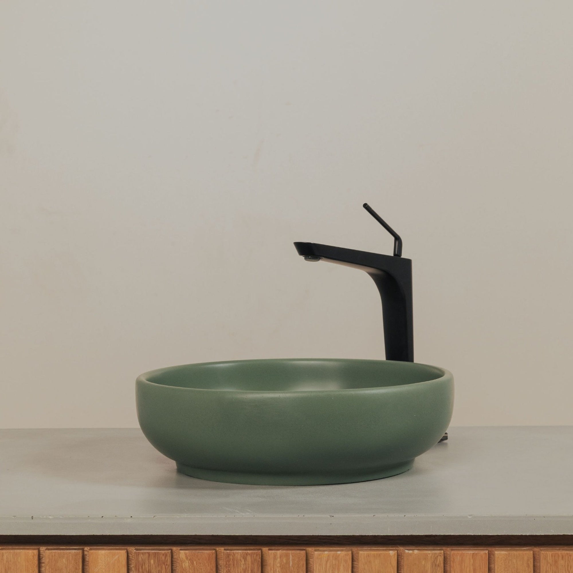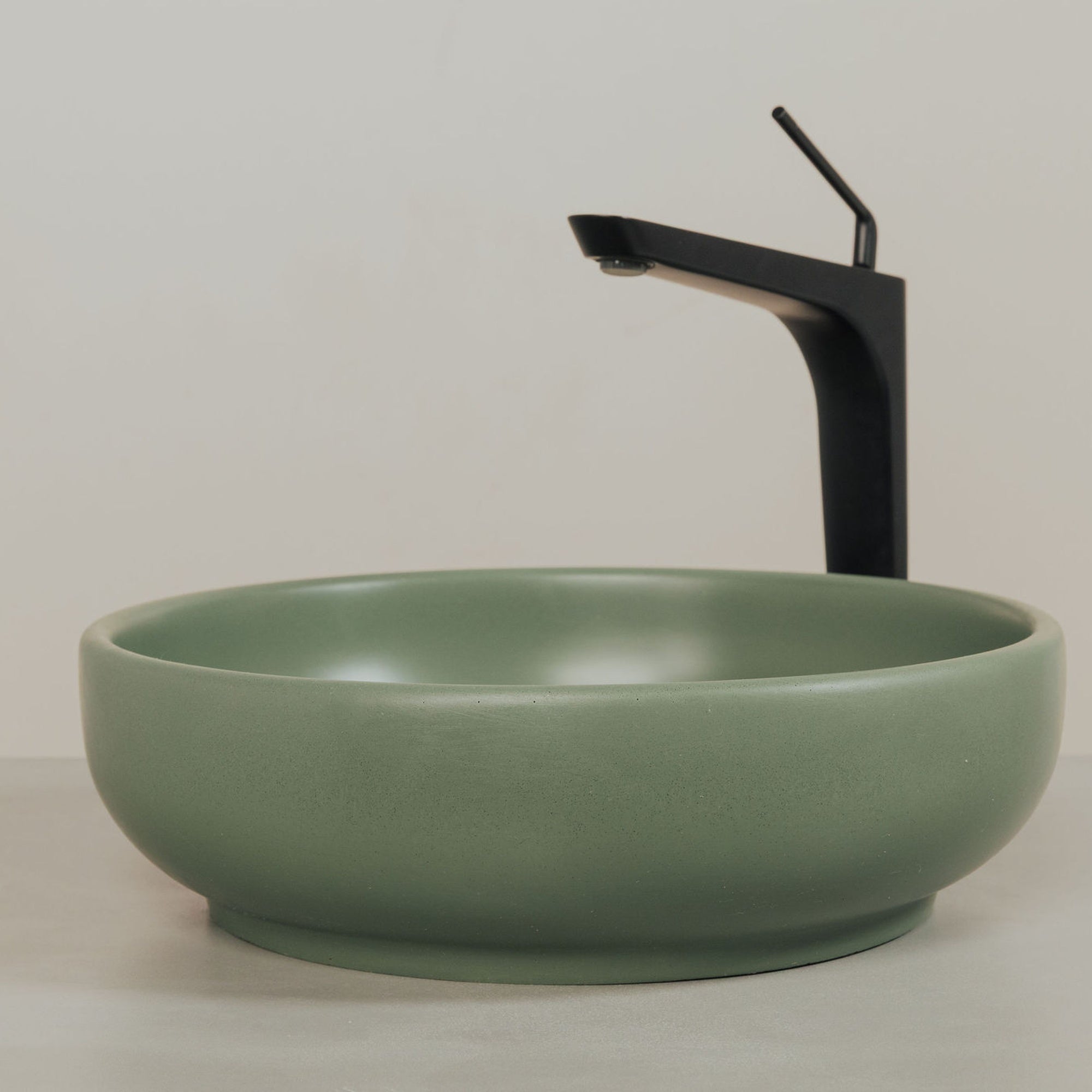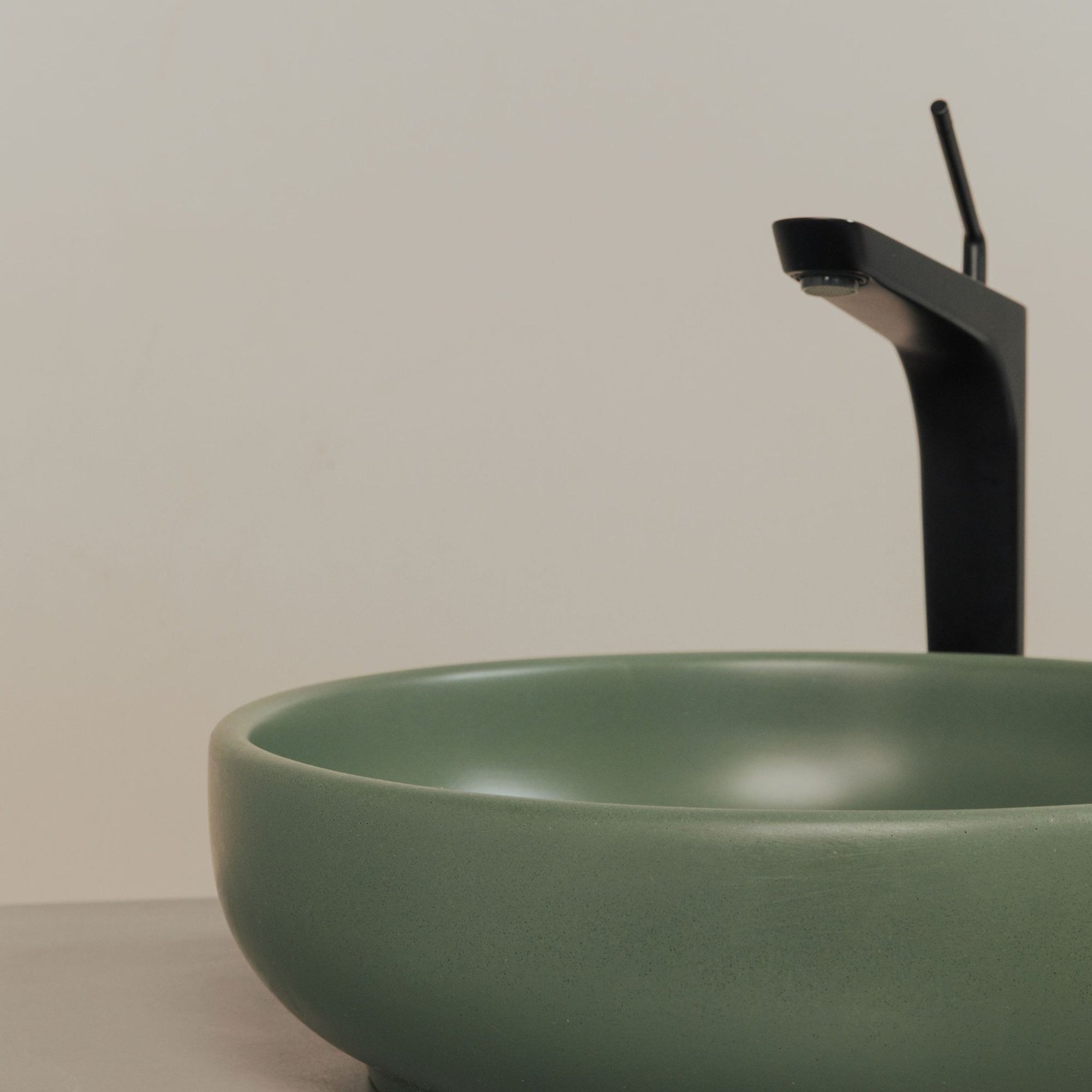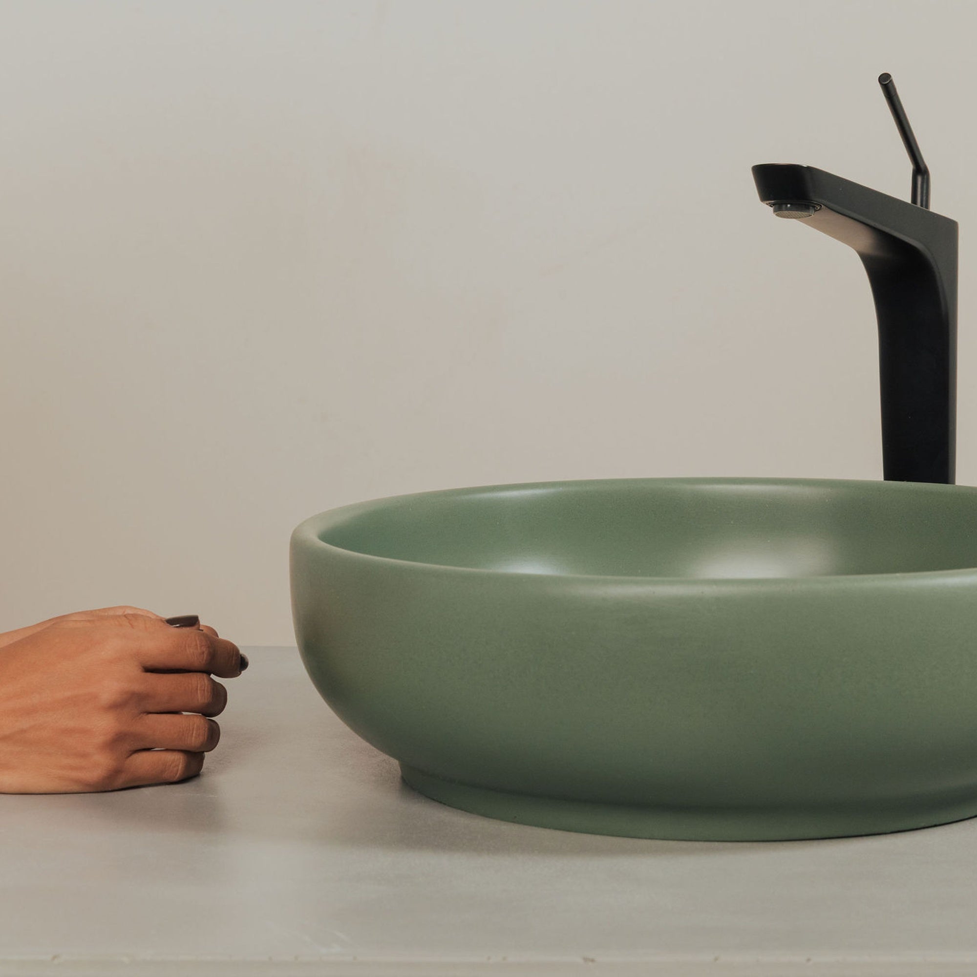 Crafted by hand in Colombia from K2 concrete, each sink carries natural variation in tone, texture, and pores that make it distinct. The smooth interior, sculpted silhouette, and matte finish work together to create a vessel sink that feels refined, tactile, and built to last.