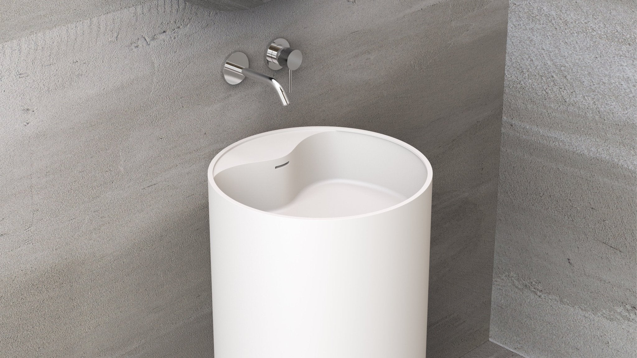 Transform your bathroom into a sanctuary of luxury with the Solidroll pedestal washbasin – where form meets function in flawless harmony.