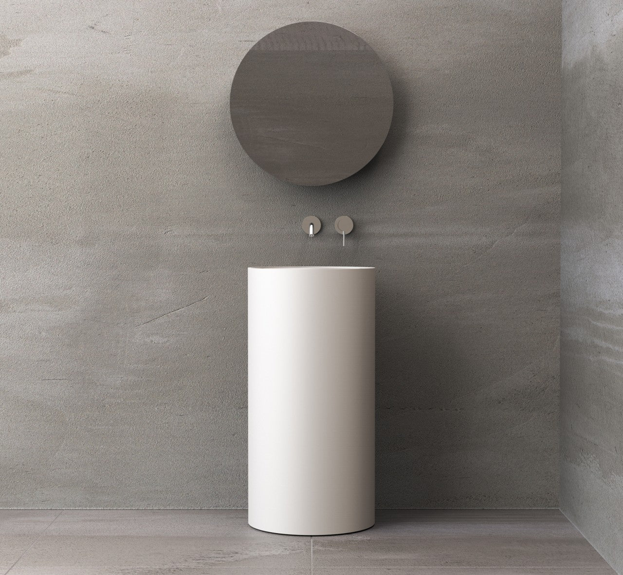 Elevate your bathroom with the Ideavit Solidroll, a sleek and modern round pedestal washbasin designed to blend timeless elegance with contemporary style. Standing at an impressive 35 inches tall, this striking piece commands attention with its minimalist silhouette and smooth matte white finish, offering a luxurious focal point for any high-end space.