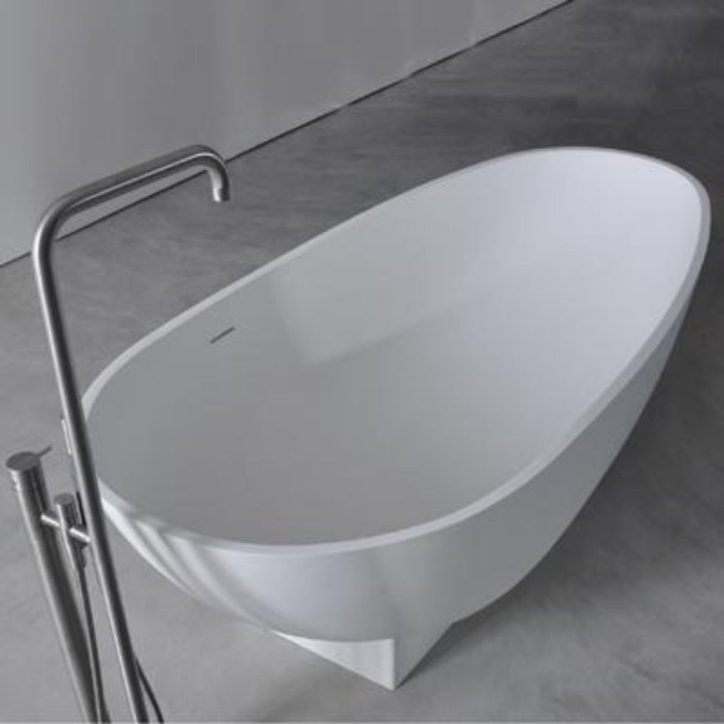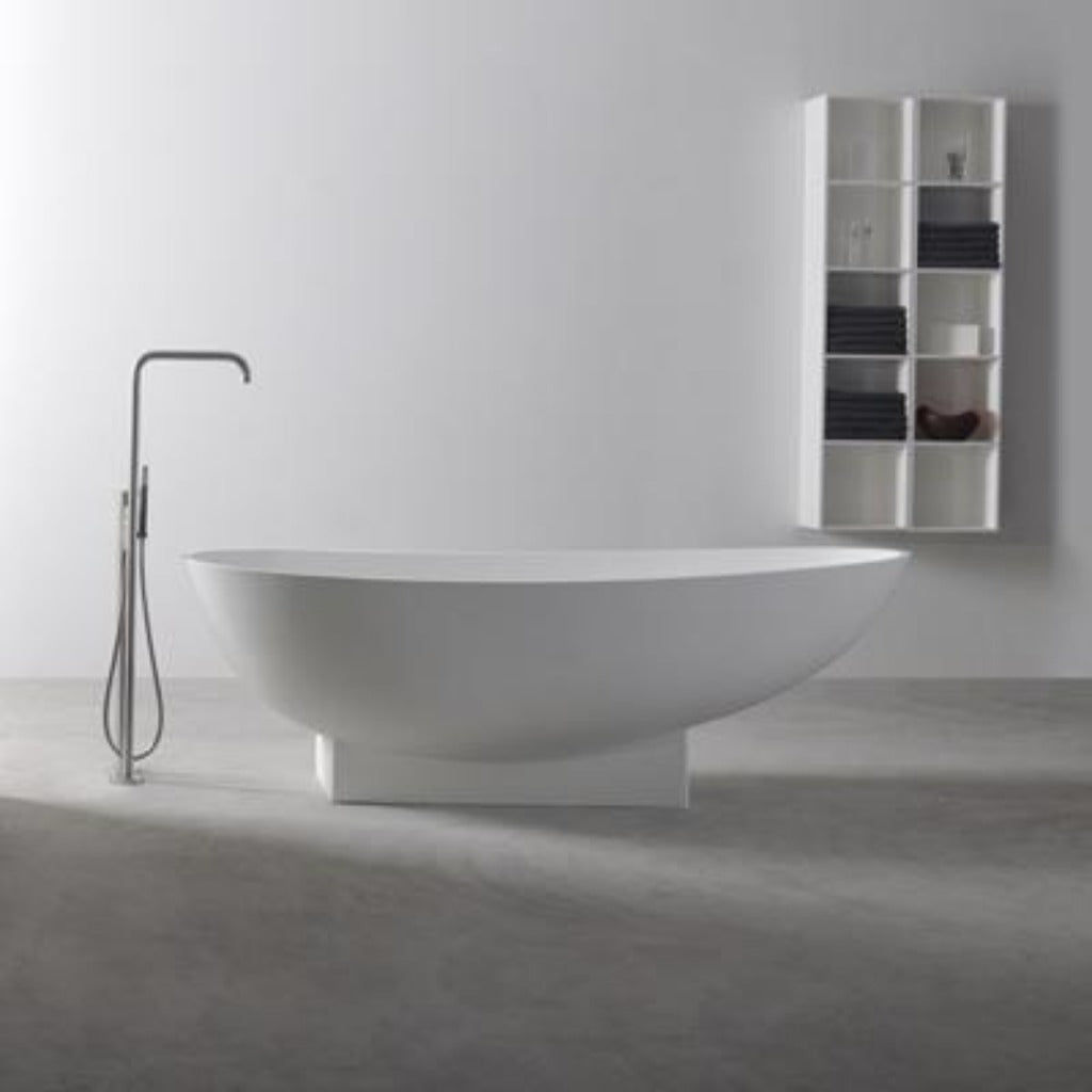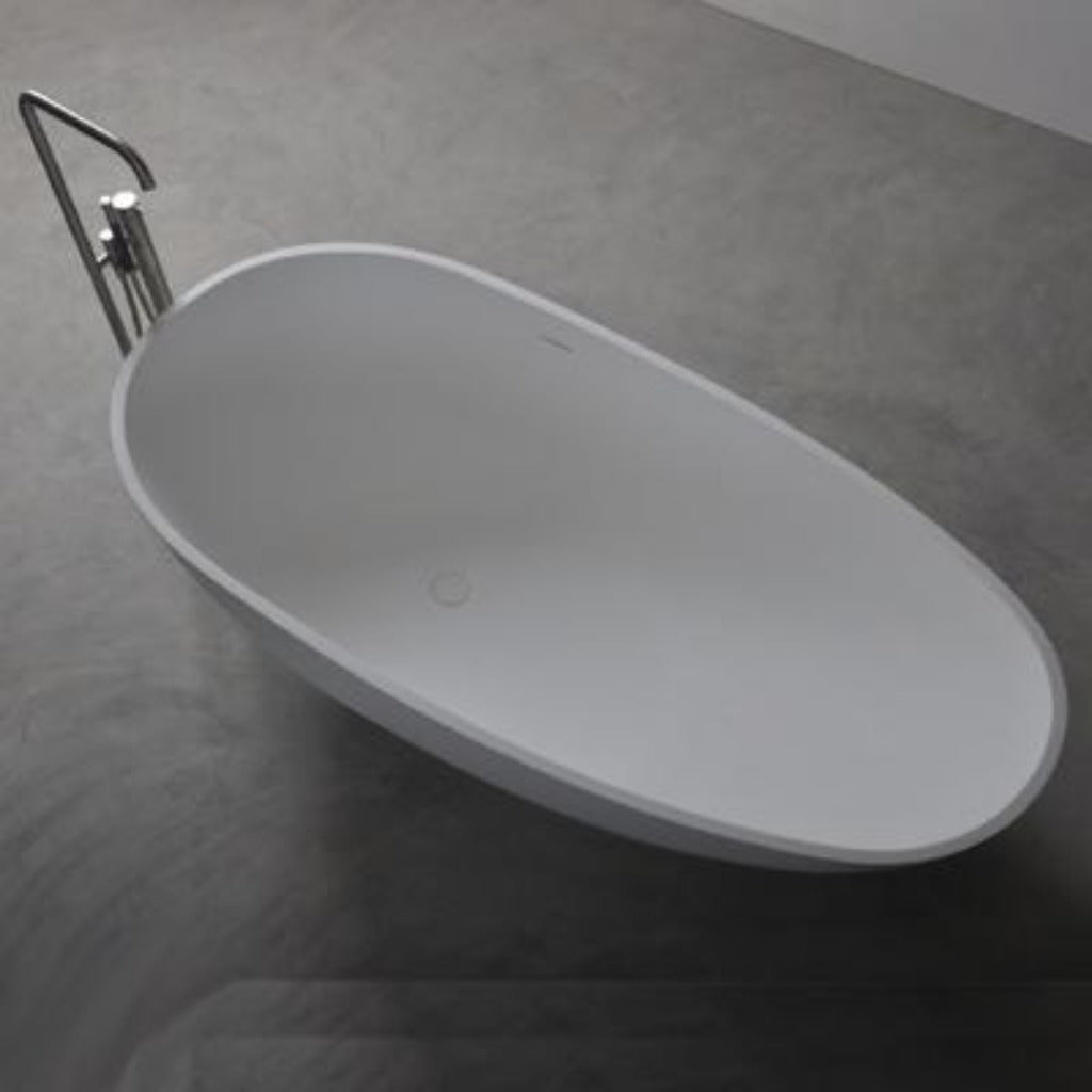 The Solidleaf bathtub from the house of Ideavit is a unique egg shaped tub that features a solid white matte surface and a overflow hole at the center towards the head of the tub. Also included is a waste pipe and a convenient pop-up drainage with a solid white matte cover. The egg shape of the Solidleaf is perfect for those long relaxing soaks.