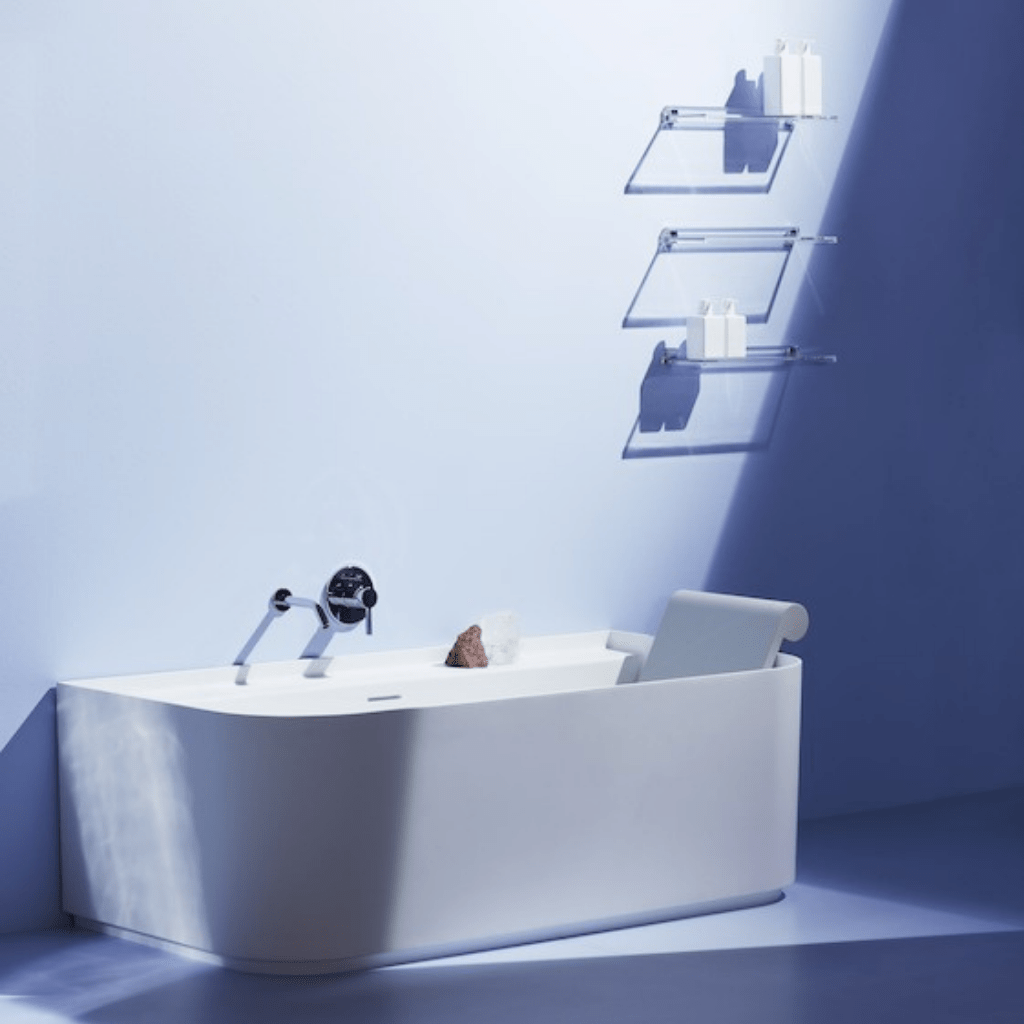 The Sonar 220347 bathtub from the house of Laufen is a innovative design with refined contoured elements which converge in an extraordinary aesthetic and functional form. It was designed by the internationally acclaimed and eclectic designer Patricia Urquiola who designed the tub as part of the SONAR collection. The tub comes with an integrated overflow and a wall connection at the back. Enjoy this tub for years to come as it's extremely durable constructed from Laufen's Sentec solid surface material.